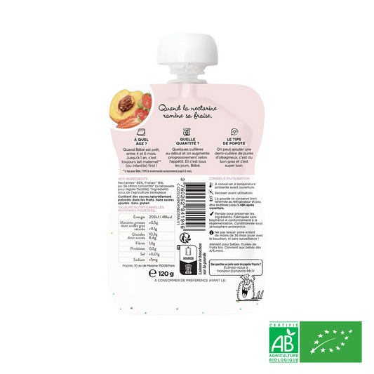 Compote Gourde Nectarine Fraises BIO Sans Sucres Ajoutés - Dès 4 mois