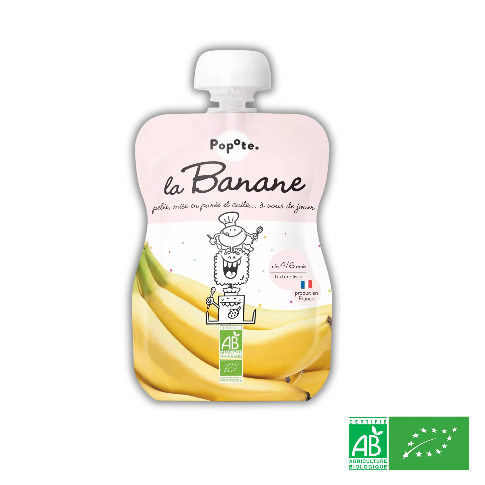 Dès 4 mois, compote gourde de fruits pour bébé à la banane bio, texture lisse